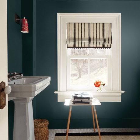 Silhouette чудово поєднується із легкими нейтралами на кшталт Swiss Coffee 0C-45, або створює відчуття простору-кокону, якщо наважитися використати його на всіх стінах.