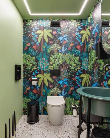 В разі ремонту в новій ванній кімнаті, у вас є вибір матеріалів для оздоблення різних зон приміщення. Завдяки вологостійкій фарбі Aura Bath&Spa, ми можете пофарбувати майже буть-яку зону санвузла, зокрема, й ті місця, на які потрапляє вода.