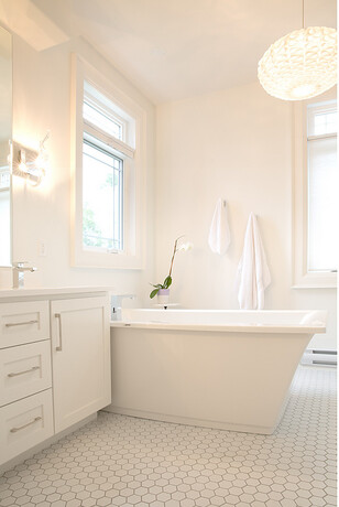 Поєднуючи ці два матеріали – вологостійку фарбу Aura Bath&Spa та праймер для складних поверхонь Inslx Stix® - ви можете пофарбувати буквально будь-яку зону у вашій ванній кімнаті. Будь-яка поверхня біля раковини чи окремо стоячої ванни, туалет, пральна зона – може бути пофабована. Важлива умова довготривалої екслуатації: